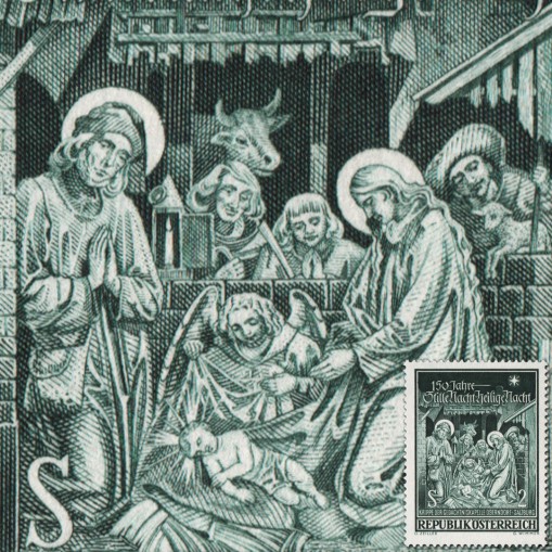 Znaczek wydany na Boże Narodzenie i upamiętniający 150-lecie kolędy „Cicha noc, święta noc”.