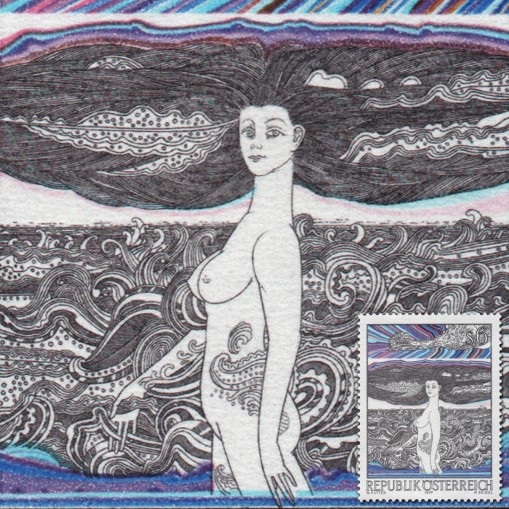 Na znaczku widnieje obraz Wolfganga Huttera „Dziewczyna z Dunaju”.