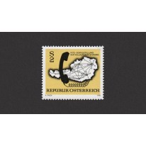 Na znaczku widnieje mapa Austrii i słuchawka telefoniczna.