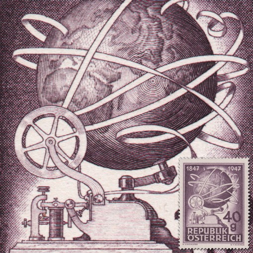 Znaczek upamiętniający 100-lecie istniania telegrafu w Austrii.