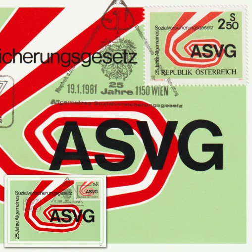 Na znaczku i karcie widnieje niemieckojęzyczny skrót ASVG - Allgemeines Sozialversicherungsgesetz.