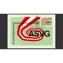 Znaczek na karcie maksimum upamiętniający 25. rocznicę uchwalenia prawa o powszechnym ubezpieczeniu społecznym.