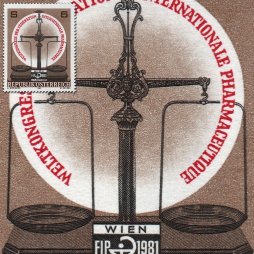 Na znaczku widnieje waga apteczna.