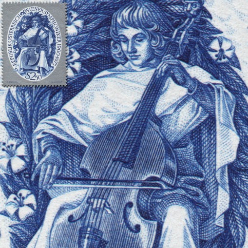 Znaczek upamiętniający 75-lecie wiedeńskiej orkiestry symfonicznej (niem. Wiener Symphoniker).