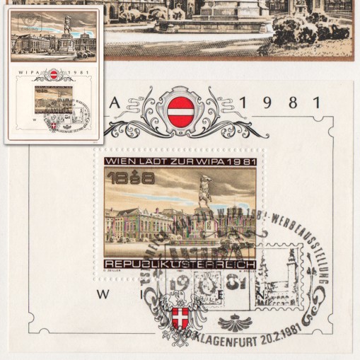 Znaczek w bloku na karcie maksimum wydany z okazji Wiedeńskiej Międzynarodowej Wystawy Filatelistycznej WIPA (niem. Wiener Internationale Postwertzeichen Ausstellung).