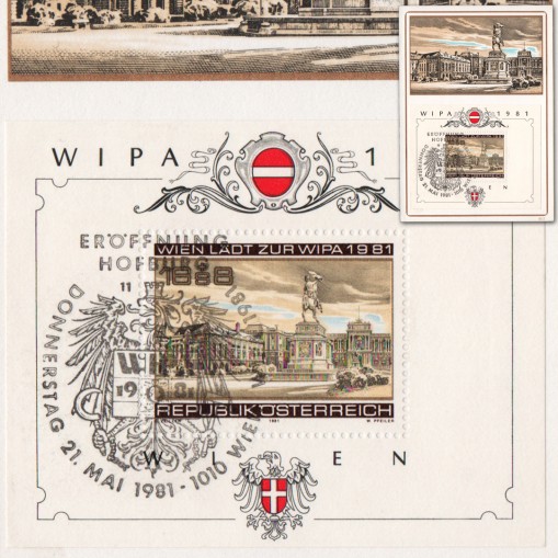 Znaczek w bloku na karcie maksimum wydany z okazji Wiedeńskiej Międzynarodowej Wystawy Filatelistycznej WIPA (niem. Wiener Internationale Postwertzeichen Ausstellung).