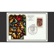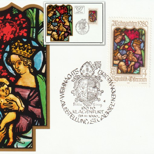 Na znaczku widnieje witraż z północno-wschodniego okna kościoła w Viktring, w Austrii. Przedstawia on pokłon trzech króli.