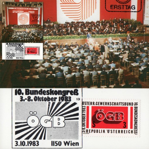 Znaczek na karcie maksimum upamiętniający kongres austriackich związków zawodowych.