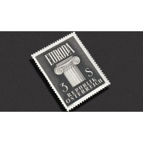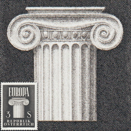 Znaczek ten ma odmienny od innych znaczków tej emisji dizajn - nie koła od rzymskiego dyliżansu pocztowego, ale zwieńczenia kolumny jońskiej.