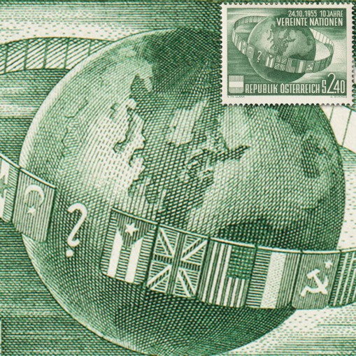 Znaczek wydany z okazji 10. rocznicy powstania Organizacji Narodów Zjednoczonych (ONZ).
