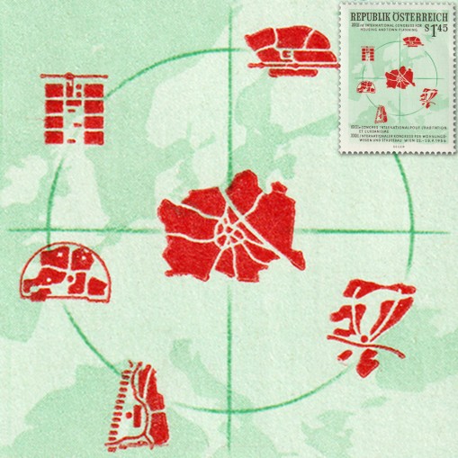 Znaczek wydany 8 czerwca 1956 roku z okazji XXIII Międzynarodowego Kongresu Przestrzennego Planowania Miejskiego, który odbył się we Wiedniu.