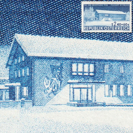 Znaczek przedstawia malowniczo położony urząd pocztowy w średniowiecznym miasteczku Kitzbühel w Tyrolu.