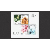 Seria w bloku, na znaczkach której widnieją następujące dyscypliny sportu: bilard, kolarstwo, piłka nożna i żeglarstwo.