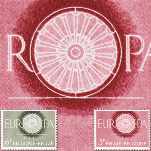 Znaczki tej emisji mają rozpoznawalny wśród filatelistów dizajn koła od rzymskiego dyliżansu pocztowego, będący projektem fińskiego grafika (Pentti Rahikainen). 19 szprych koła odpowiadało liczbie krajów zrzeszonych wówczas w CEPT, a samo koło stanowi literę „O” wyrazu EUROPA.