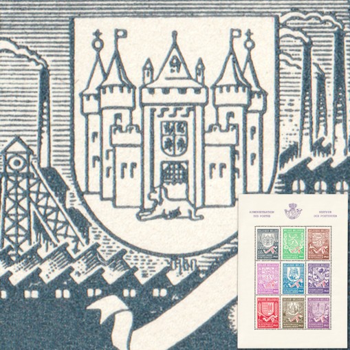 Na znaczkach widnieją herby miast belgijskich. Kolejne nazwy miast to Mons, Gandawa, Arlon, Brugia, Namur, Hasselt, Bruksela, Antwerpia i Liège.