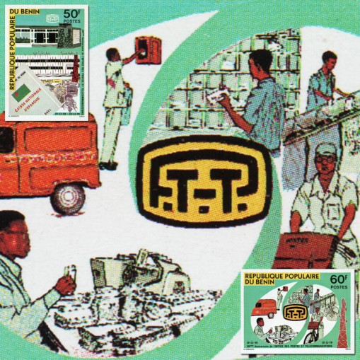 Na znaczkach widnieją kolejno: budynki poczty, antena, telefon i książeczka oszczędnościowa oraz odbieranie, sortowanie i dostarczanie przesyłek pocztowych.