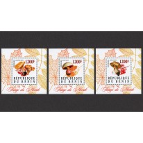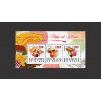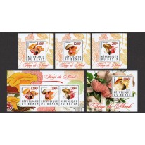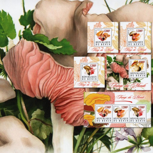 Nieautoryzowane arkusz, trzy znaczki w bloczkach oraz blok, na których widnieją następujące gatunki grzybów: