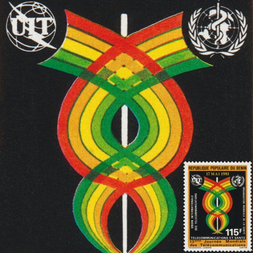 Na znaczku przedstawiono dwie komety. Ich głowy to loga Międzynarodowego Związku Telekomunikacyjnego (ITU) oraz Światowej Organizacji Zdrowia (WHO), zaś ogony oplatają się tworząc kadyceusz.