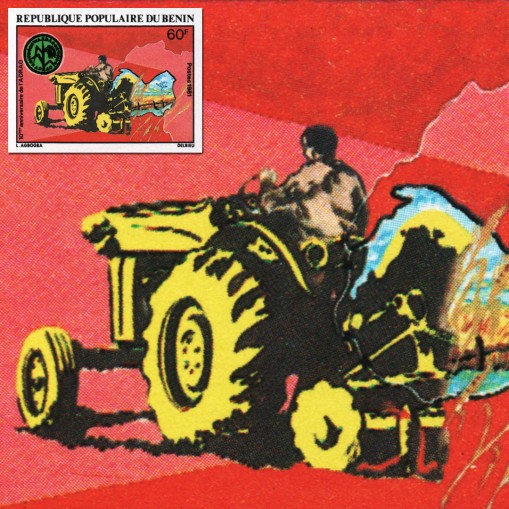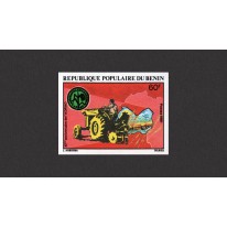 Na znaczku widnieje traktor i mapa zachodniej Afryki.