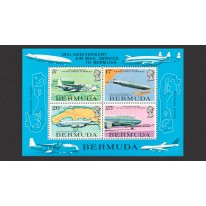 Znaczki w bloku upamiętniające 50. rocznicę powstania lotniczego transportu poczty na Bermudach.