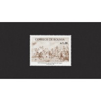 Znaczek upamiętniający 150. rocznicę bitwy pod Ingavi. Było to starcie zbrojne, które miało miejsce 18 listopada 1841 roku pomiędzy armią Peru oraz Boliwii. Bitwa była toczona w ramach wojny peruwiańsko-boliwijskiej. Dowódcami obu armii byli ówcześni prezydenci obu krajów Agustín Gamarra po stronie Peru oraz José Ballivián, prezydent Boliwii.