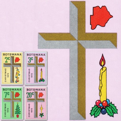 Na znaczkach widnieje krzyż, mapa kraju oraz dekoracje bożonarodzeniowe.