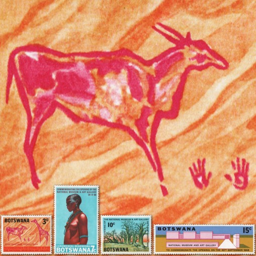 Znaczki upamiętniające otwarcie Muzeum Narodowego i Galerii Sztuki w stolicy Botswany Gaborone.