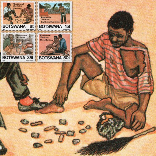 Na znaczkach widnieją przykłady szamanizmu, kolejno: