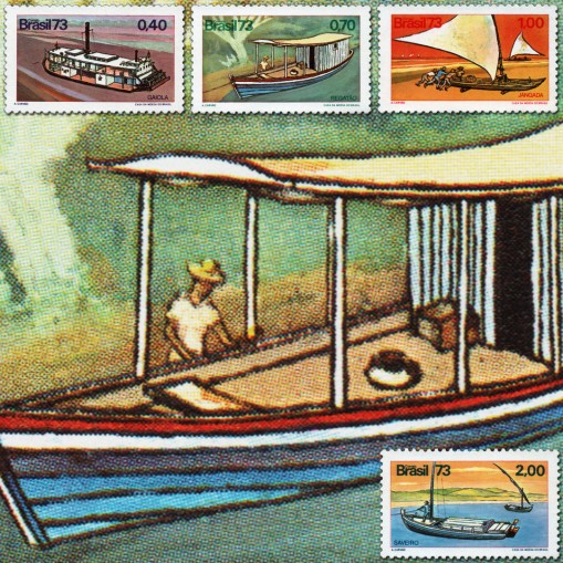 Na znaczkach widnieją brazylijskie łodzie i statki, kolejno: