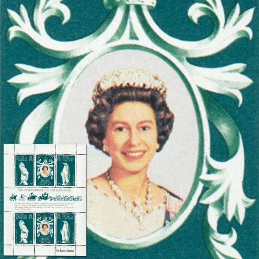 Znaczki w arkuszu upamiętniające 25. rocznicę wstąpienia na tron królowej Elżbiety II.