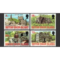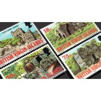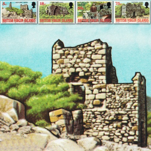 Na znaczkach widnieją ruiny historycznych budynków na Wyspach Dziewiczych, m.in. destylarni rumu.