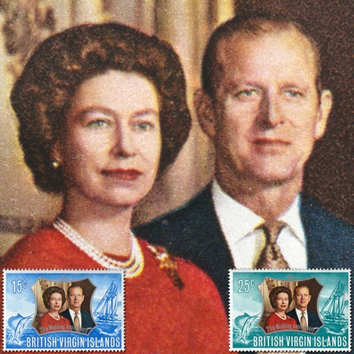 Znaczki upamiętniające 25. rocznicę ślubu królowej Elżbiety II i księcia Filipa.