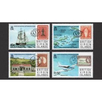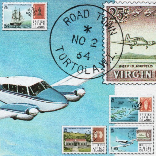 Na znaczkach widnieją stare walory pocztowe, środki transportu poczty (statek i samolot Piper PA-23 Apache) oraz mapa Wysp Dziewiczych i urząd pocztowy w Road Town.