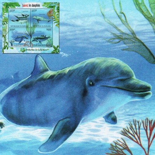 Seria w arkuszu, na znaczkach której widnieją delfiny: delfinek plamisty i butlonos zwyczajny.