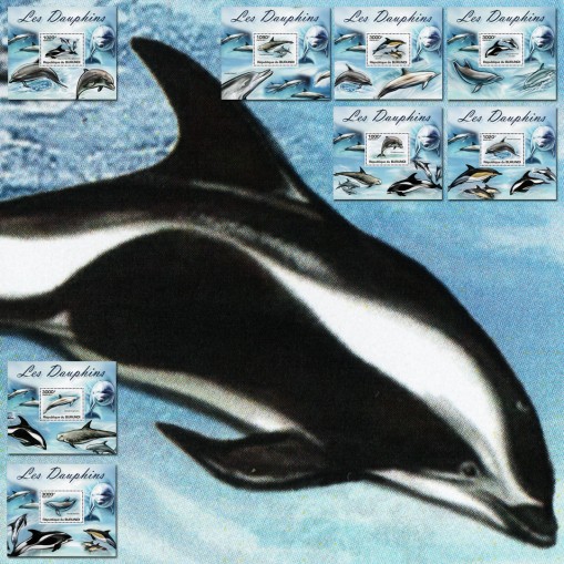 Seria w blokach, na znaczkach której widnieją następujące gatunki delfinów: