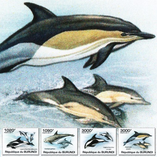 Seria, na znaczkach której widnieją następujące gatunki delfinów:
