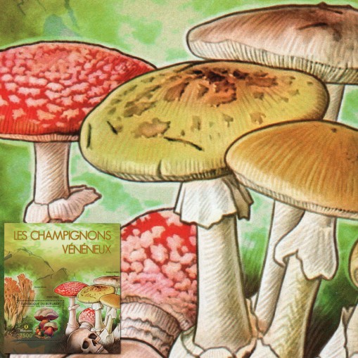 Blok, na którym widnieje grzyb krwistoborowik szatański.