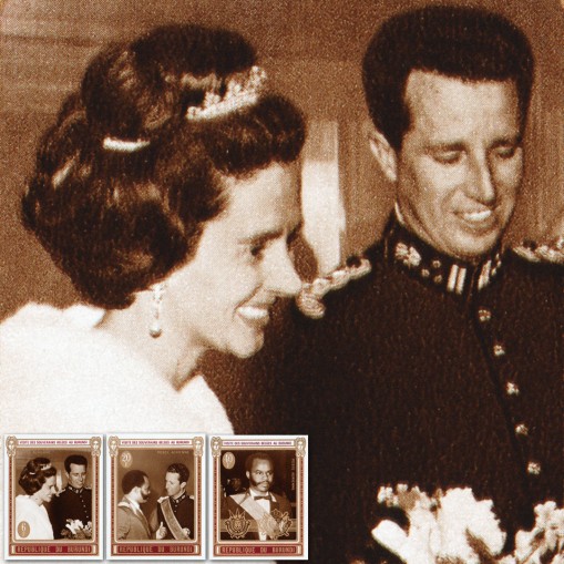 Na znaczkach widnieją oni w towarzystwie prezydenta Burundi Michela Micombero.