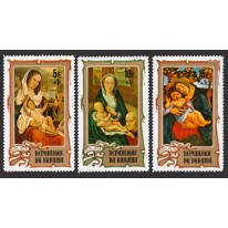 Na znaczkach widnieją reprodukcje dzieł malarstwa przedstawiających Madonnę z Dzieciątkiem autorstwa następujących artystów: Van Orley, Hans Memling, Botticelli, Lippi i di Gredi.