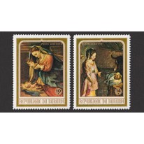 Na znaczkach widnieją reprodukcje dzieł malarstwa przedstawiających Madonnę z Dzieciątkiem autorstwa następujących artystów: Lippi, Botticelli, Dürer, Rafael, Correggio, Baroccio, El Greco i Maino.