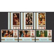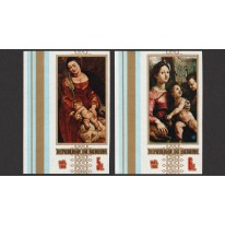 Na znaczkach widnieją reprodukcje dzieł malarstwa przedstawiających Madonnę z Dzieciątkiem autorstwa następujących artystów epoki renesansu: Petera Paula Rubensa, Giulio Romano, Botticelliego, Benvenuto Tisiego, Jacopo Palmy starszego i Giorgionego.