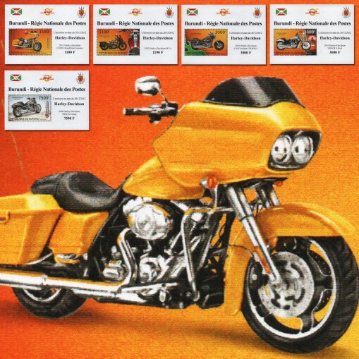 Seria w bloczkach, na znaczkach których widnieją motocykle Harley Davidson.