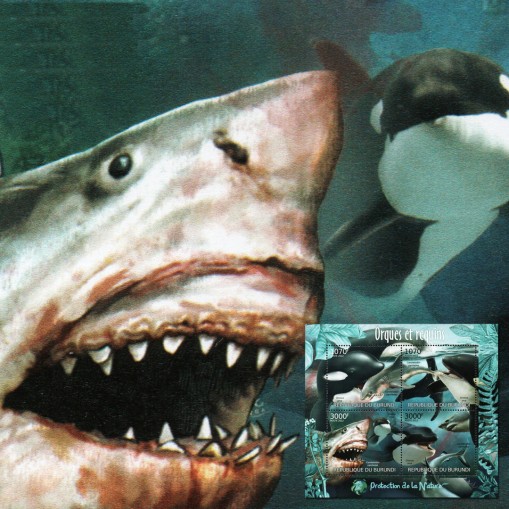 Seria w arkuszu, na znaczkach której widnieją orki i rekiny.