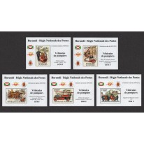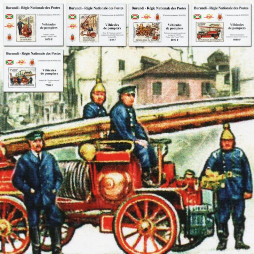 Seria w bloczkach, na znaczkach których widnieją pierwsze wozy strażackie.