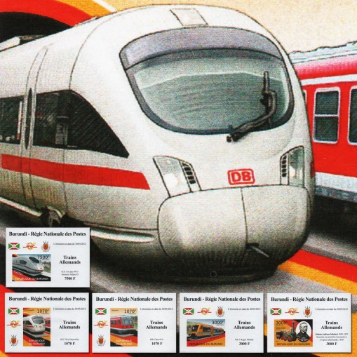 Seria w bloczkach, na znaczkach której widnieją słynne pociągi niemieckie, kolejno: