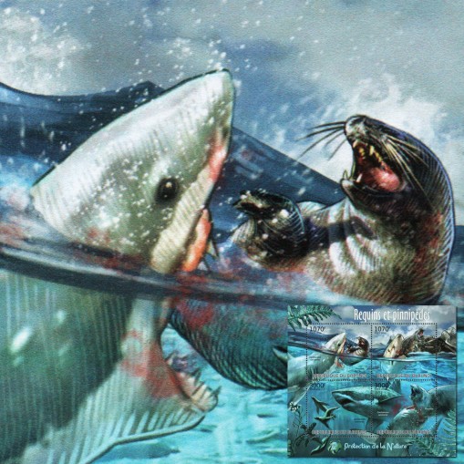 Seria w arkuszu, na znaczkach której widnieją rekiny polujące na uchatki.