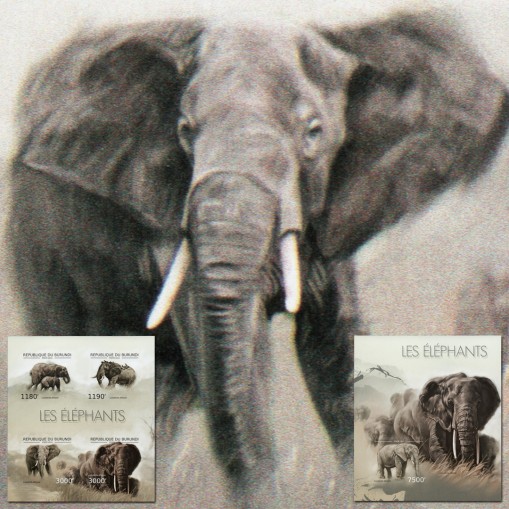 Seria w arkuszu i blok, na znaczkach których widnieje słoń afrykański.