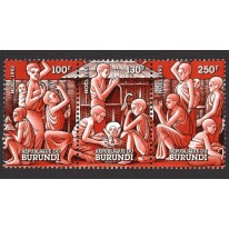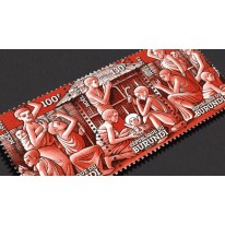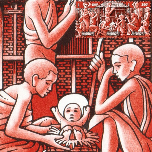 Na znaczkach widnieje przedstawienie szopki bożonarodzeniowej w stylu afrykańskim.