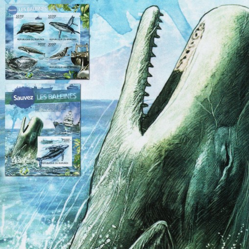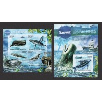 Seria w arkuszu i blok, na znaczkach których widnieją następujące gatunki wielorybów: