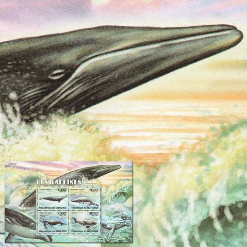 Seria w bloku, na znaczkach której widnieją następujące gatunki wielorybów: